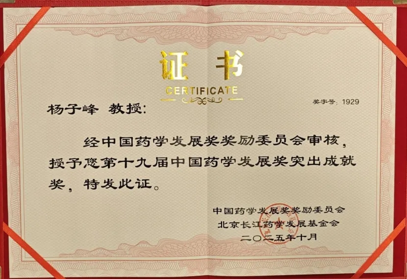 杨子峰教授(左三)荣获第十九届中国药学发展奖·突出成就奖