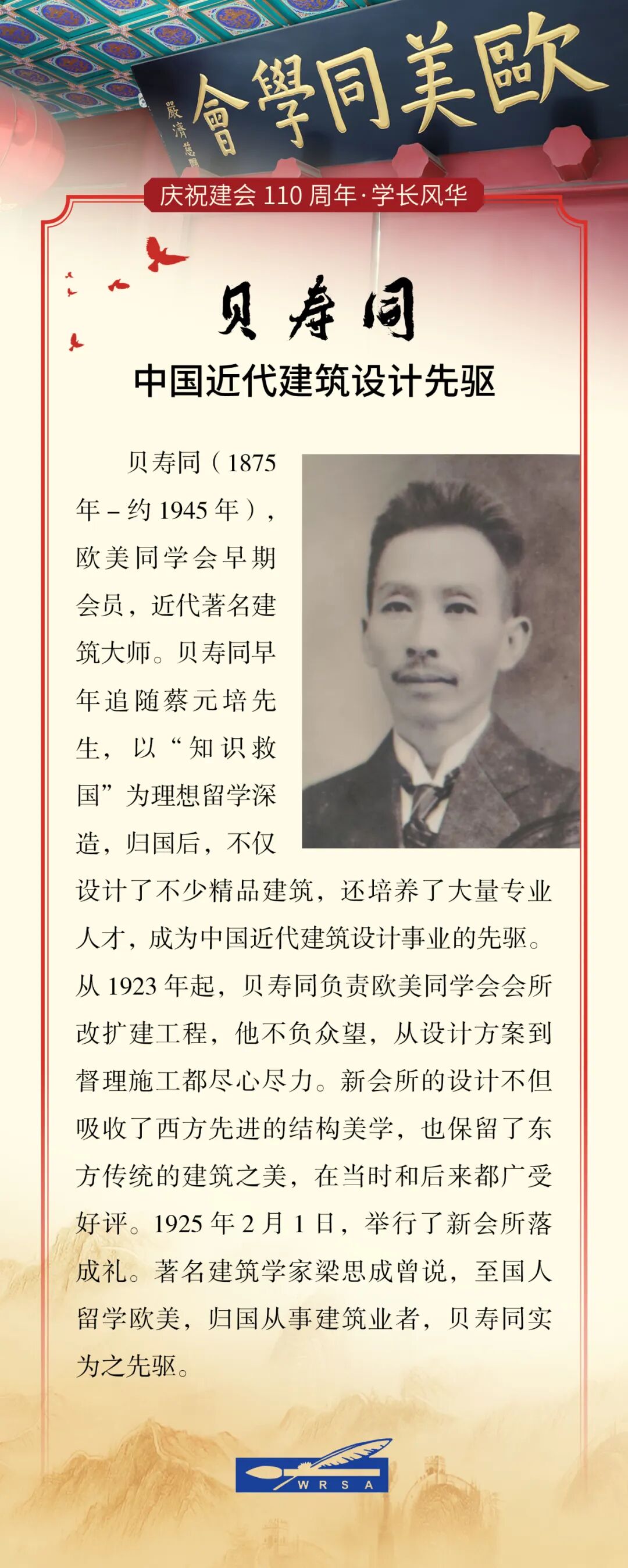 庆祝建会110周年·学长风华丨贝寿同:中国近代建筑设计先驱